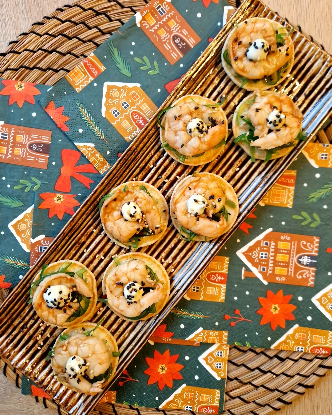 Op de valreep nog een snelle en gemakkelijke kerstinspiratie! Deze blini’s met ponzu garnaal en wakame zijn perfect. Super makkelijk voor te bereiden zodat je tijdens het kerstdiner alleen de blini nog maar even op hoeft te maken. Ideaal als amuse en voor meerdere personen te maken! 🎄❄️ Bekijk dit recept ook op mijn Instagram account en laat je inspireren voor nog meer heerlijke ideeën.